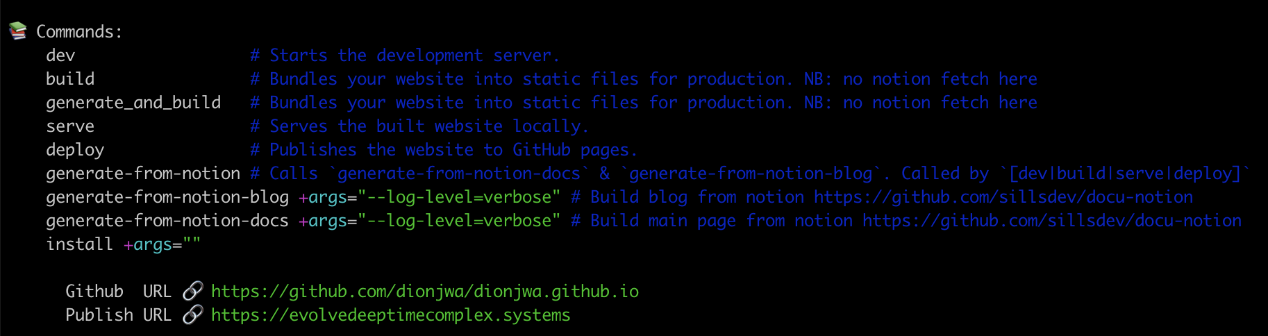 just on it’s own doesn’t solve the problem of sharing complex commands. That’s where deno comes in. It’s a single binary, running Typescript. I know Typescript is not everyone’s cup of tea, but it’s typed, gets the job done, and the URL imports make sharing between repositories MUCH easier.